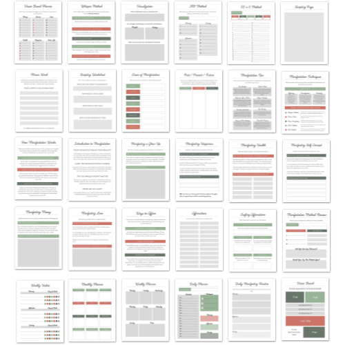 This Canva planner includes 30 manifestation pages, including: